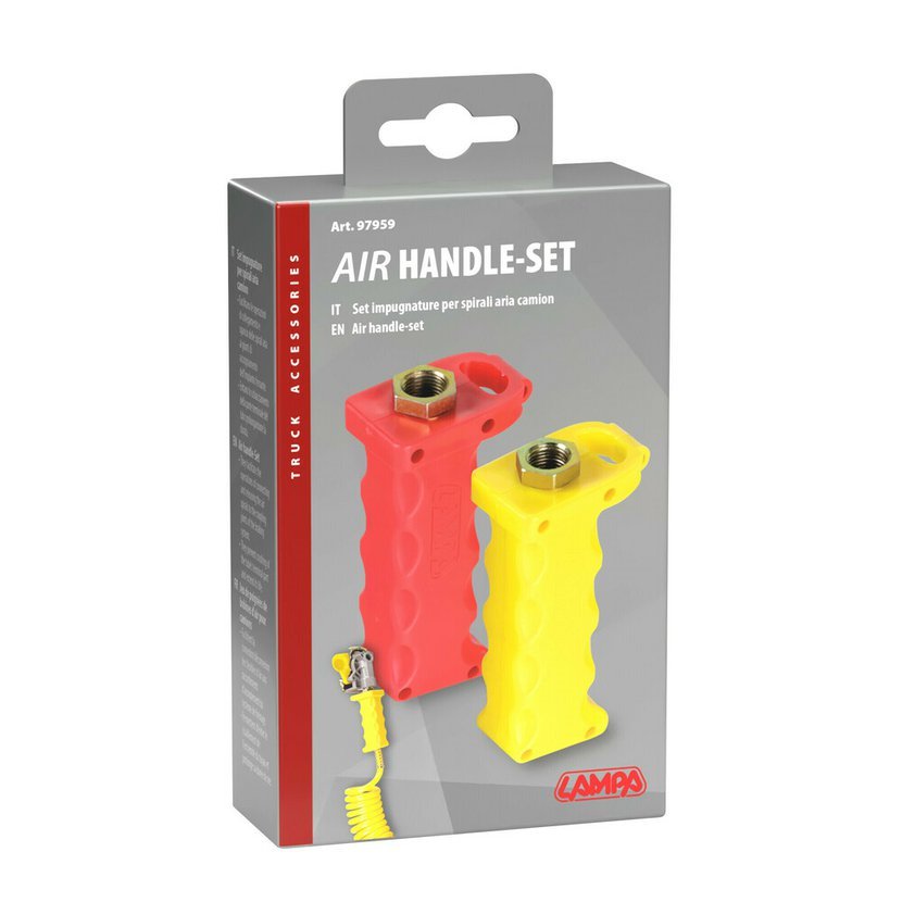Sada ergonomických rukojetí LAMPA PRO-HANDLE je určena pro profesionální použití u nákladních vozidel. Výrazně usnadňuje manipulaci při připojování a odpojování vzduchových spirálových hadic k brzdovému systému.