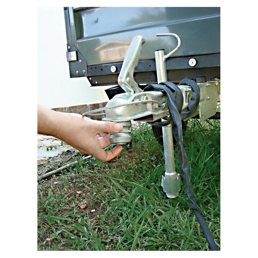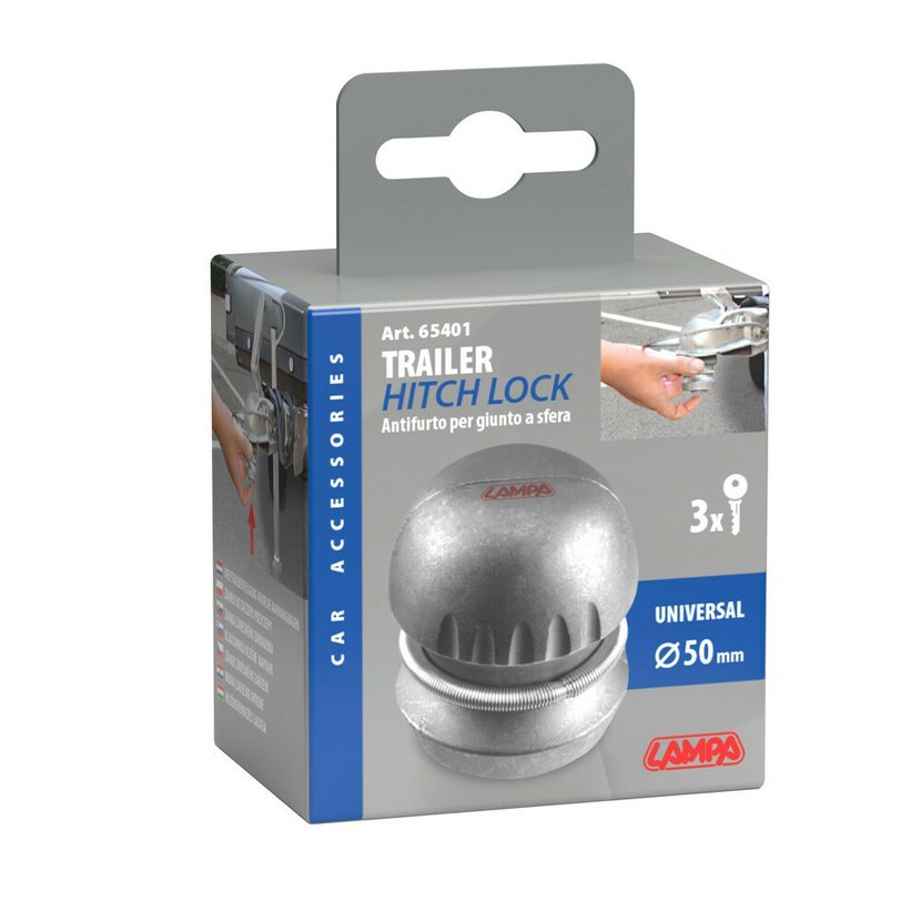 Trailer Hitch Lock je praktické a účinné zabezpečení přívěsů s tažnou koulí o průměru 50 mm. Robustní konstrukce a jednoduchý mechanismus zajišťují, že přívěs nebude možné neoprávněně připojit k vozidlu.